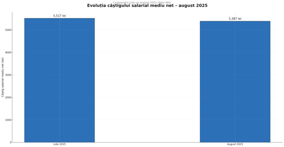 Câștigul salarial mediu net din România a fost de 5.387 lei în luna august 2025, potrivit datelor publicate de Institutul Național de Statistică. Față de luna […]