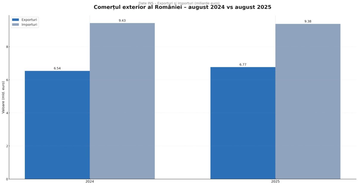 Datele recente arată că, în luna august 2025, exporturile României au însumat 6,77 miliarde euro, iar importurile 9,38 miliarde euro, ceea ce a generat un deficit […]
