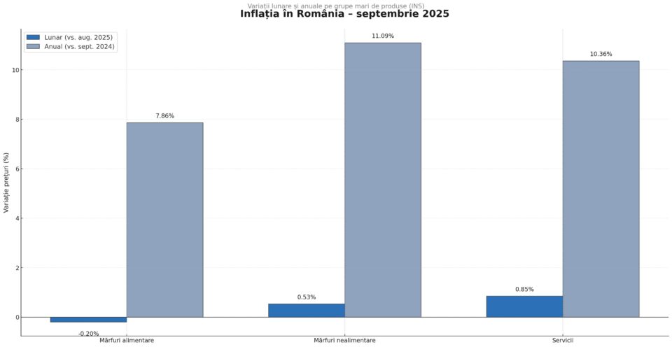 Rata anuală a inflației din România a ajuns la 9,9% în septembrie 2025, în ușoară scădere față de lunile anterioare, potrivit datelor publicate de Institutul Național […]