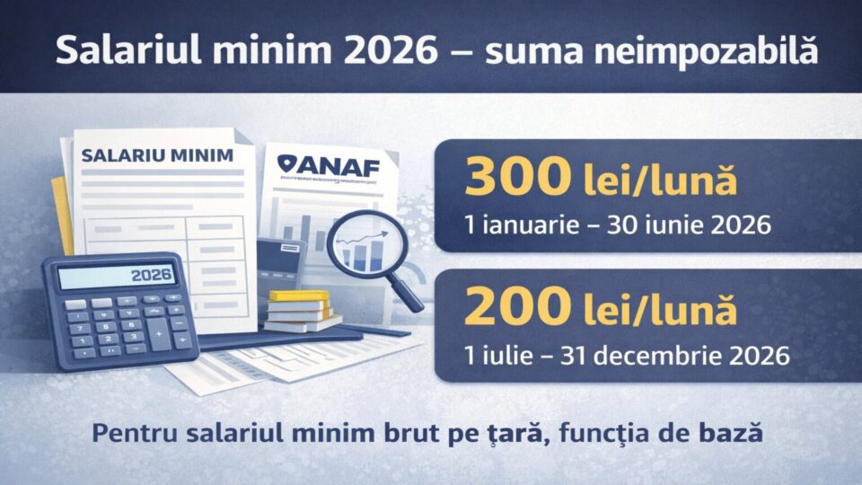 Agenția Națională de Administrare Fiscală (ANAF) a publicat informații oficiale referitoare la suma minimă neimpozabilă aplicabilă salariului minim în anul 2026, în contextul modificărilor aduse Codului […]