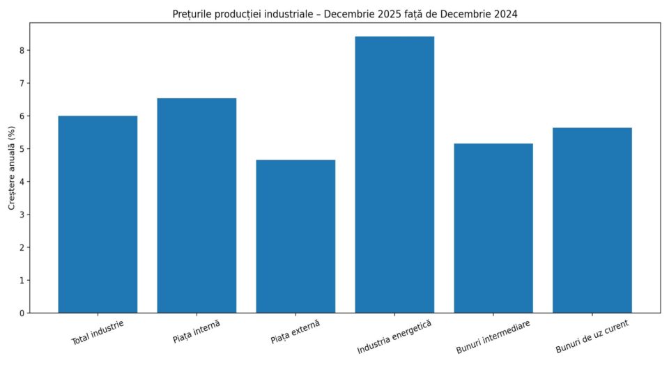 Prețurile producției industriale din România au continuat să crească la finalul anului 2025. În luna decembrie 2025, indicele prețurilor producției industriale (piața internă și piața externă) […]