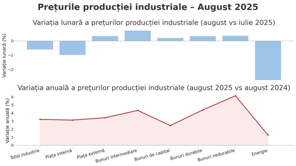 Prețurile producției industriale au înregistrat în august 2025 o scădere de 0,6% față de iulie, dar se mențin cu 3,2% peste nivelul din august 2024. Pe […]