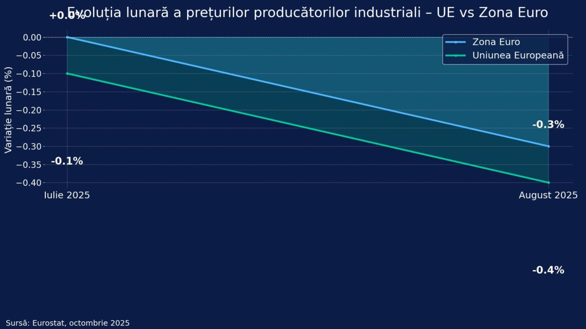 Conform datelor publicate de Eurostat pentru luna august 2025, prețurile producătorilor industriali au scăzut cu 0,3% în zona euro și cu 0,4% la nivelul Uniunii Europene, […]