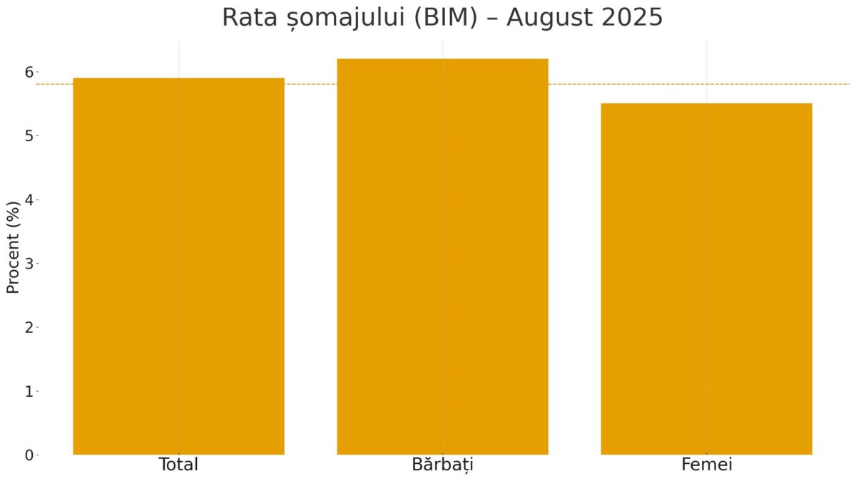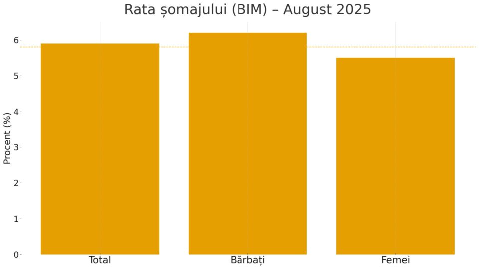 Rata șomajului, calculată după metoda BIM, a fost de 5,9% în august 2025, în creștere ușoară față de 5,8% în iulie. Numărul total al persoanelor fără […]