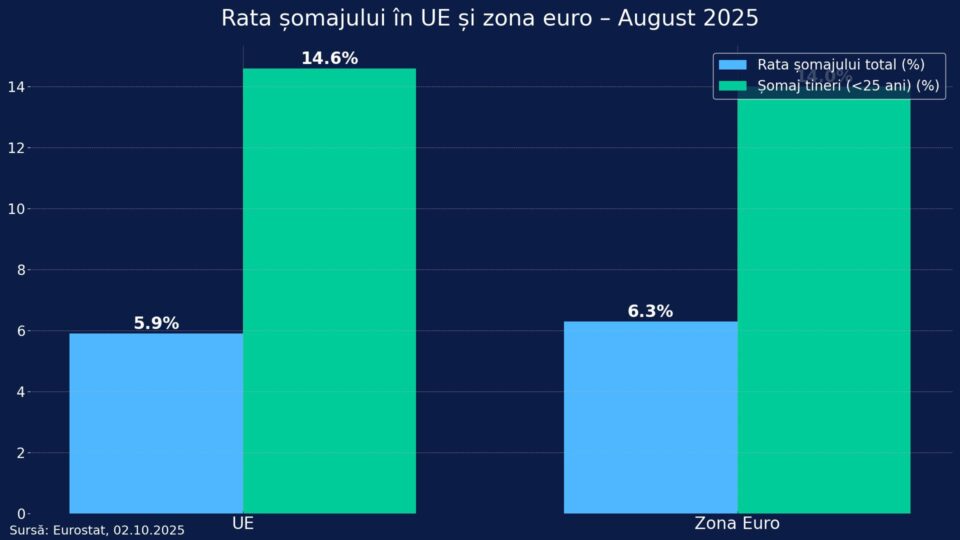 Potrivit datelor publicate de Eurostat, rata ajustată sezonier a șomajului în zona euro a fost de 6,3% în august 2025, în creștere ușoară față de 6,2% […]