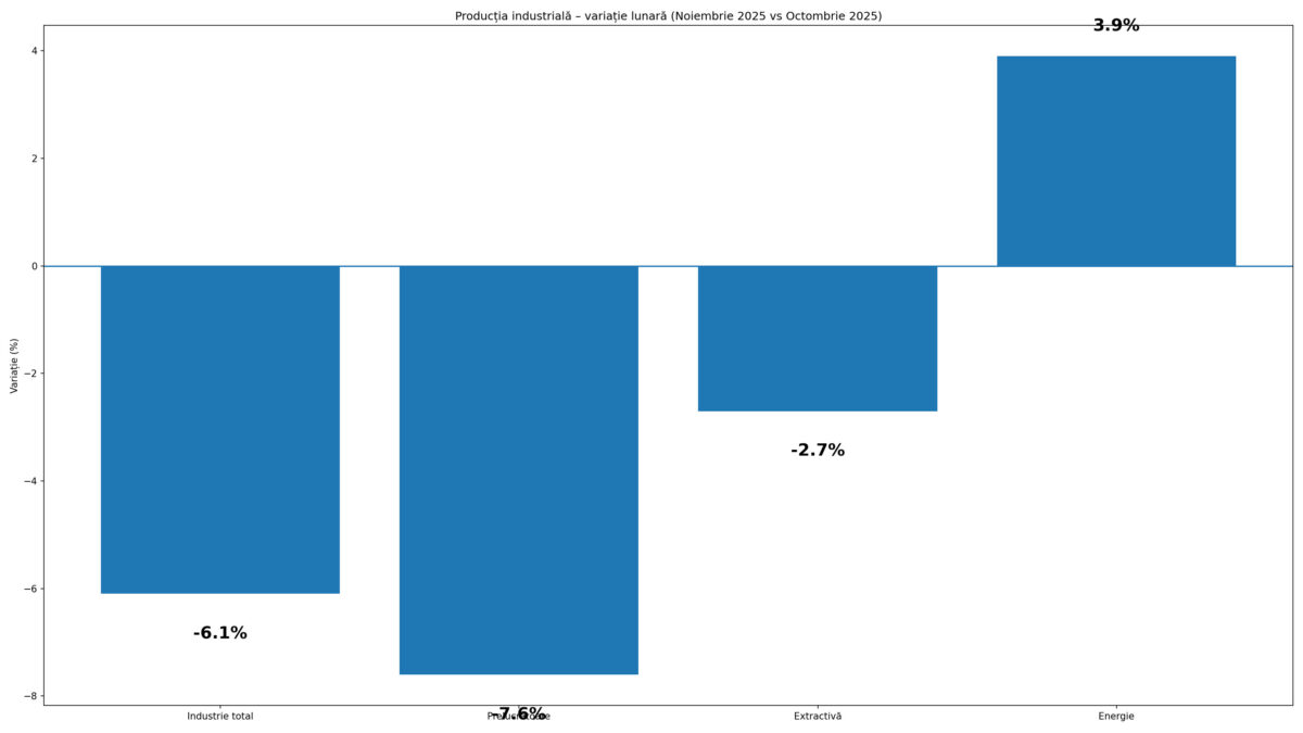 Activitatea industrială a intrat pe un trend de corecție la final de 2025. În luna noiembrie 2025, producția industrială a scăzut față de octombrie cu 6,1% […]