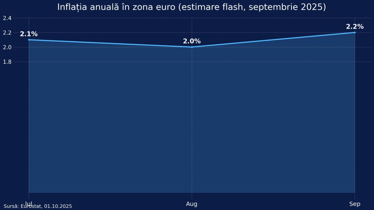 Rata anuală a inflației în zona euro a crescut la 2,2% în septembrie 2025, potrivit estimării rapide publicate de Eurostat, după ce în luna august indicatorul […]