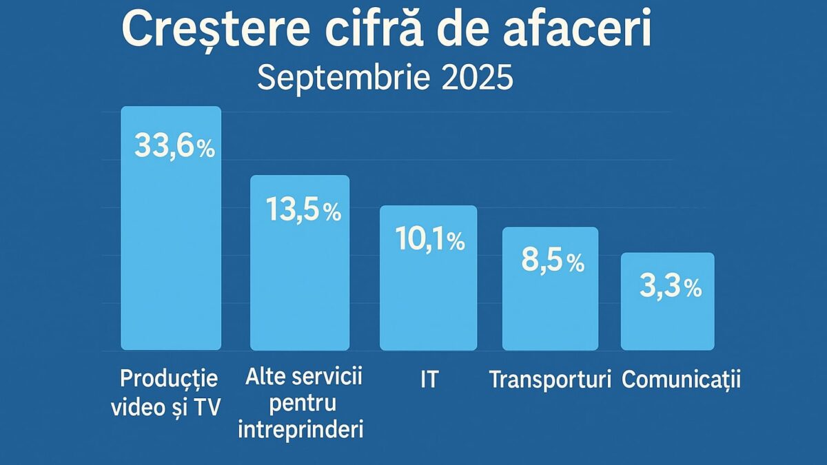 Față de septembrie 2024, cifra de afaceri a crescut cu 6,6%, cu ritmuri notabile în: