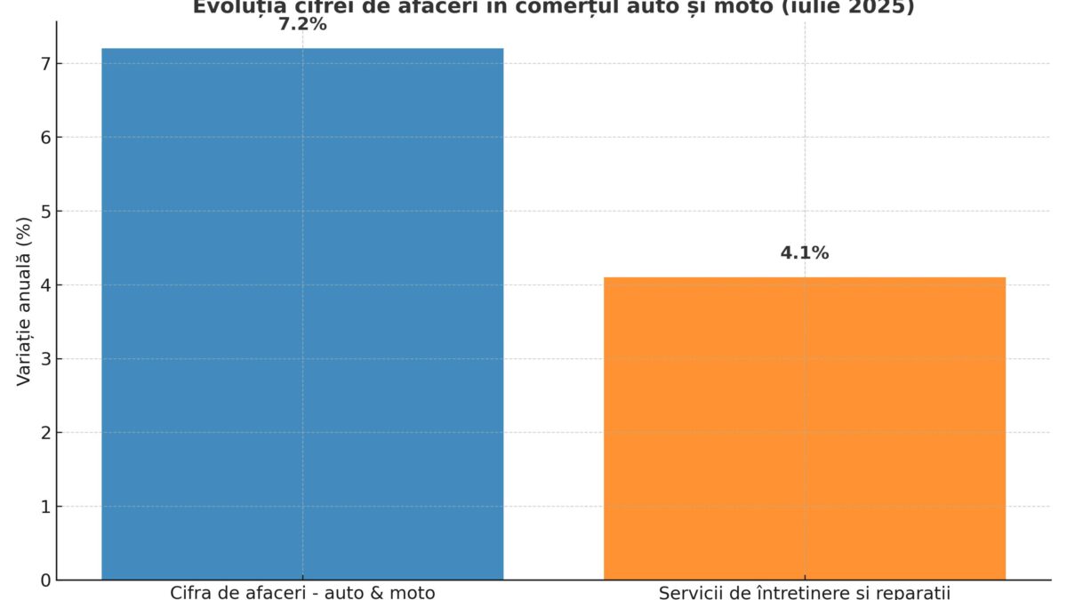 Potrivit datelor publicate de Institutul Național de Statistică pentru luna iulie 2025, cifra de afaceri în comerțul cu autovehicule și motociclete a înregistrat o creștere de 8,7% față de luna similară din 2024. Evoluția este determinată în special de segmentul comerțului cu autovehicule noi, care rămâne motorul principal al pieței, dar și de activitățile de întreținere și reparații, aflate pe un trend pozitiv.