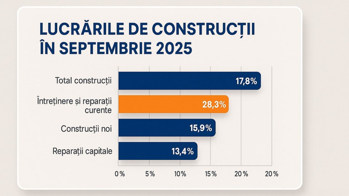 Comparativ cu septembrie 2024, sectorul a avansat cu 8,2%, cu un plus remarcabil la lucrările de reparații capitale (+61,6%). Pentru IMM-uri, această evoluție creează premise pentru o piață diversificată, unde lucrările de modernizare, reparație și întreținere câștigă tot mai mult teren.