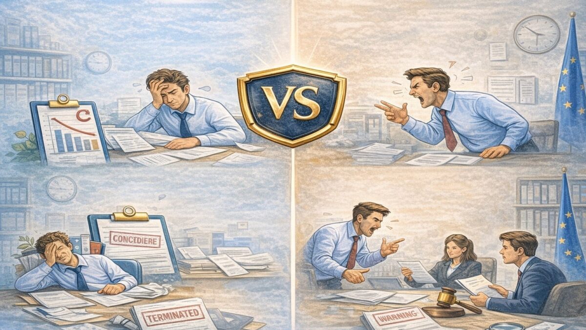În practica relațiilor de muncă, una dintre cele mai costisitoare greșeli pentru angajatori este încadrarea eronată a unei situații în categoria greșită: necorespundere profesională sau abatere disciplinară. Deși, în aparență, ambele pot duce la măsuri de sancționare sau chiar la încetarea contractului individual de muncă, ele au naturi juridice diferite și implică proceduri diferite.