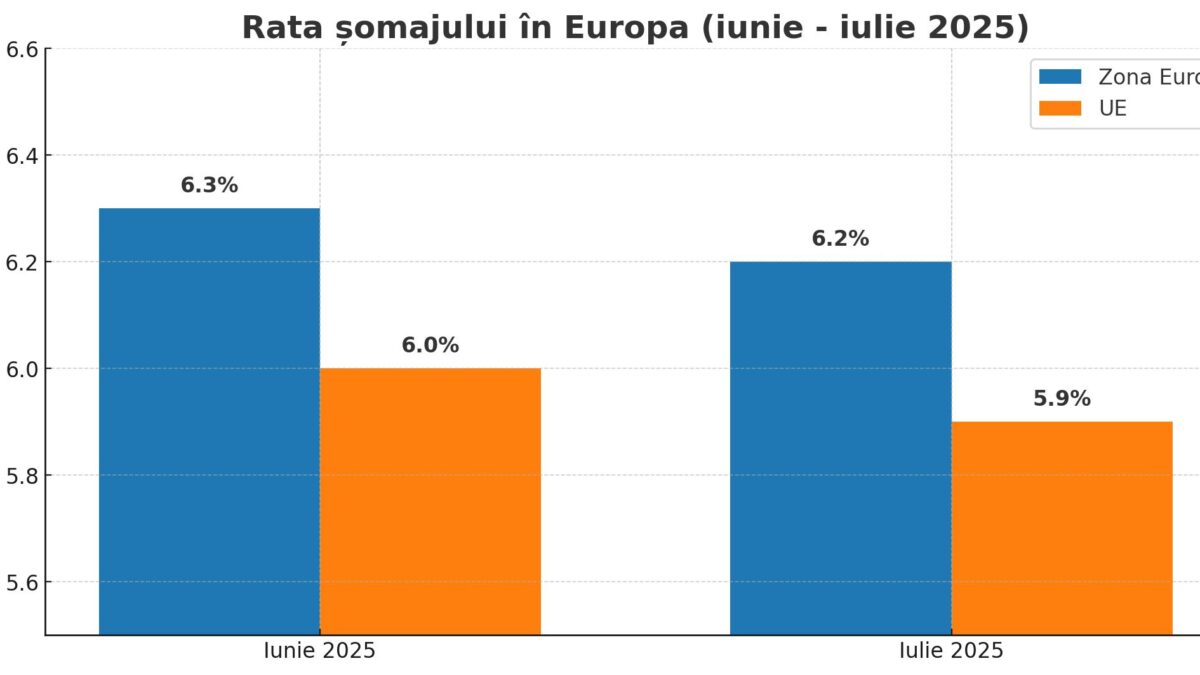 Potrivit datelor publicate de Eurostat, în iulie 2025 rata șomajului în zona euro a coborât la 6,2%, de la 6,3% în iunie. În Uniunea Europeană, șomajul s-a redus la 5,9%, confirmând o tendință descendentă și atingând cel mai scăzut nivel din ultimele 12 luni.