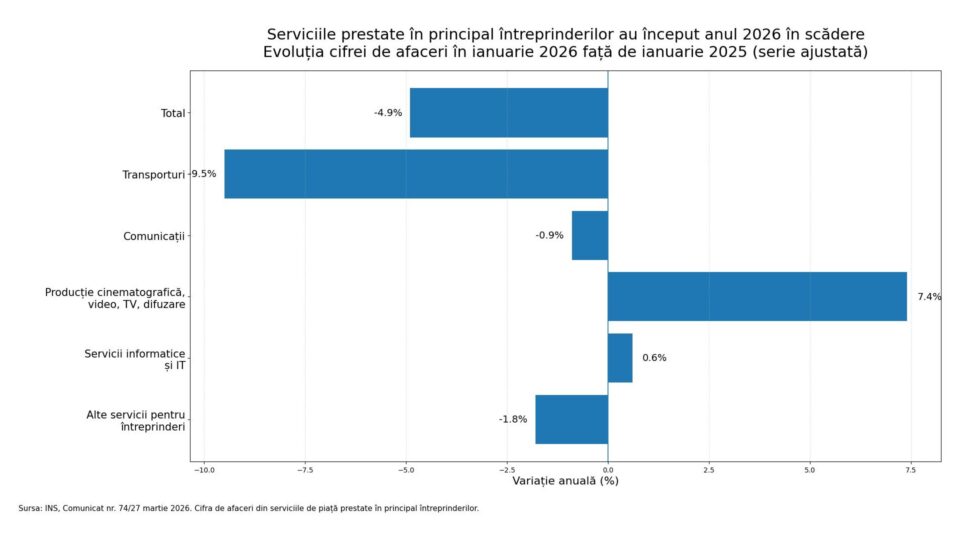 Cifra de afaceri din serviciile de piață prestate în principal întreprinderilor a scăzut în luna ianuarie 2026, atât față de luna precedentă, cât și comparativ cu […]