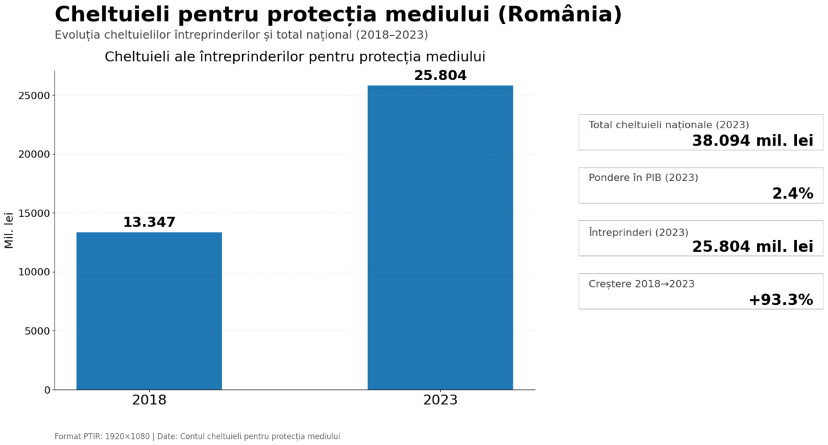 În anul 2023, cheltuielile naționale pentru protecția mediului au totalizat 38.094 milioane lei, echivalentul a 2,4% din PIB. În structură, întreprinderile reprezintă principalul actor al finanțării […]