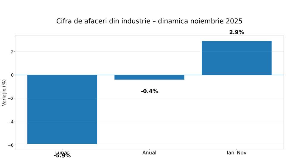 Cifra de afaceri din industrie a înregistrat în noiembrie 2025 o scădere puternică față de luna anterioară, de aproape șase procente, semnalând o frânare accentuată a […]