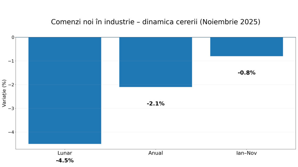 Finalul anului 2025 aduce o confirmare a tendinței de slăbire a cererii industriale. În luna noiembrie, volumul comenzilor noi din industrie a scăzut vizibil față de […]