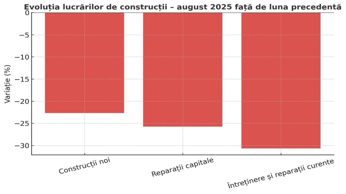 În luna august 2025, volumul lucrărilor de construcții a înregistrat o scădere de 24,7% față de iulie, respectiv 26,2% în termeni ajustați. Evoluția are un caracter […]