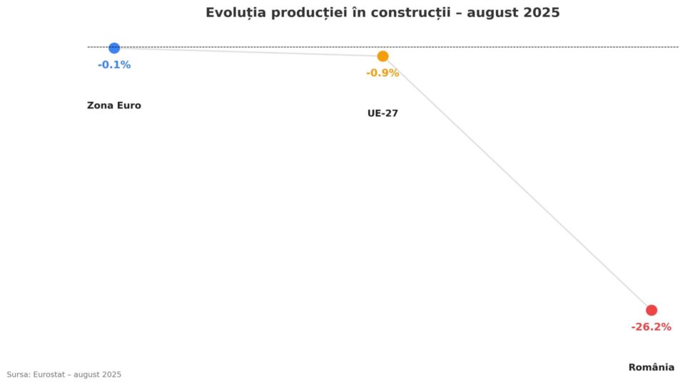 Producția ajustată sezonier din sectorul construcțiilor a înregistrat în august 2025 o scădere de 0,1% în zona euro și de 0,9% în Uniunea Europeană, comparativ cu […]