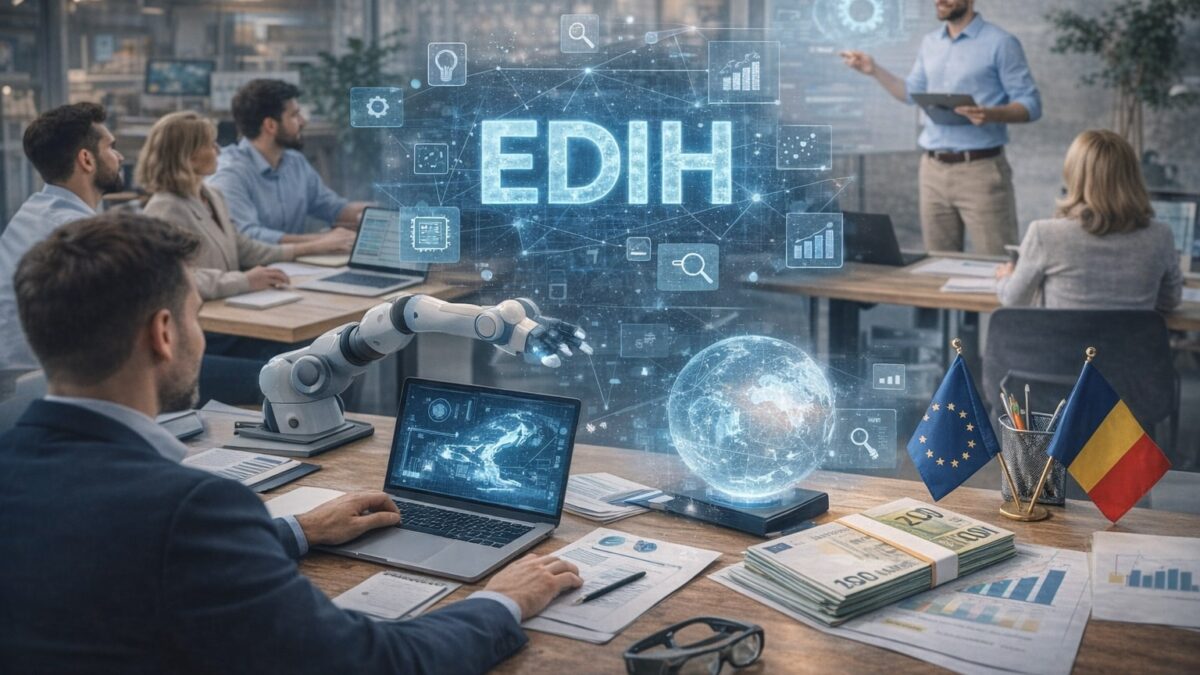 Digitalizarea nu mai este un proiect „de modernizare”, ci o condiție pentru competitivitatea IMM-urilor: eficiență operațională, automatizare, trasabilitate, raportare, vânzări online, securitate cibernetică și integrare în lanțurile de furnizori. În acest context, România dispune de o rețea de European Digital Innovation Hubs (EDIH) – hub-uri europene de inovare digitală care funcționează ca „one-stop-shop” pentru IMM-uri și instituții publice, oferind suport tehnic și consultanță aplicată pentru transformarea digitală.